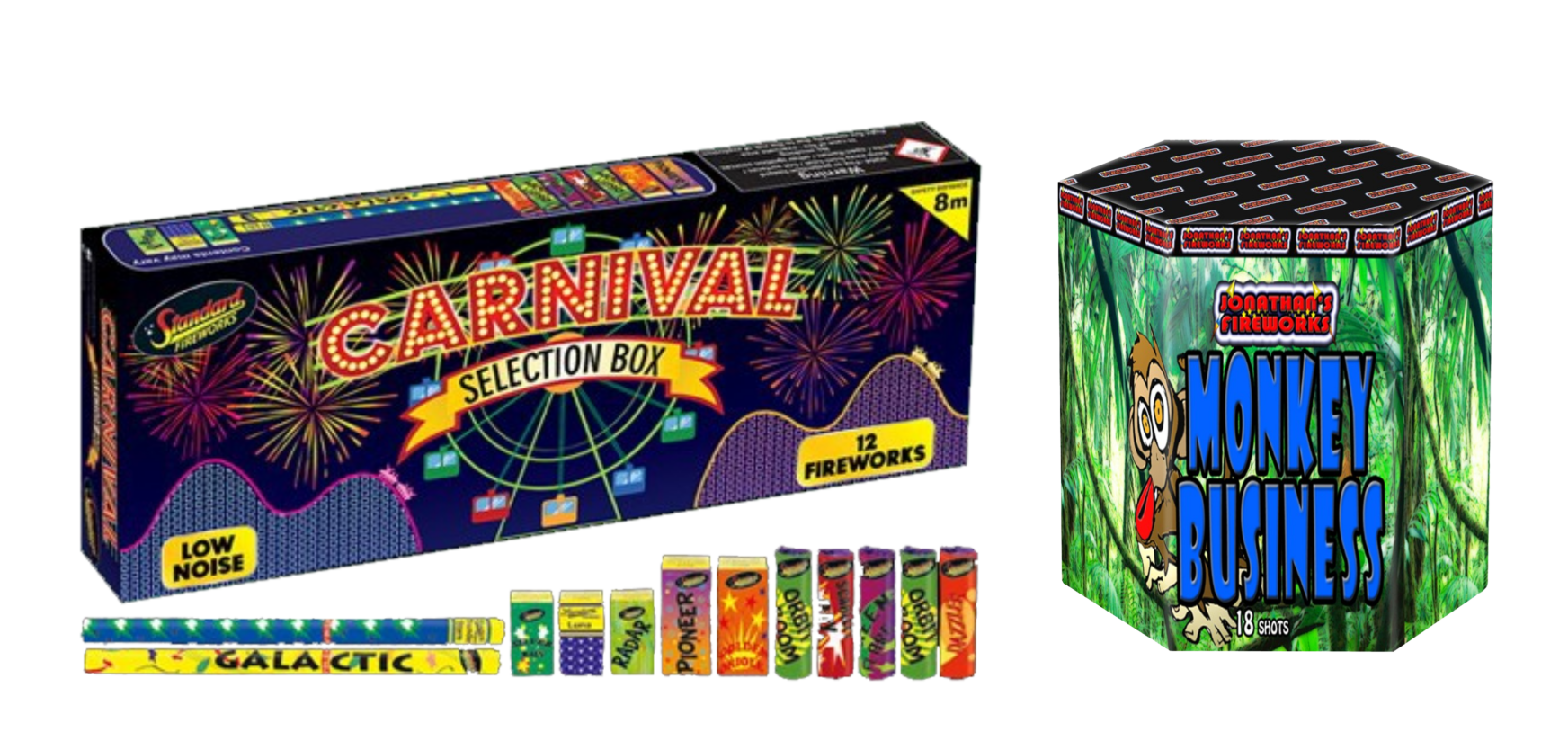 1 x Carnival Selection Box – 12 fireworks (low noise)